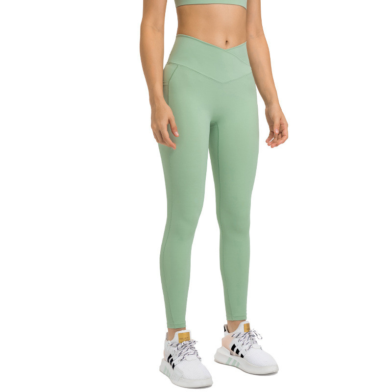 ผู้หญิงใหม่ข้ามเอวกีฬาถุงน่องด้านข้างกระเป๋ากางเกงโยคะ Elastic